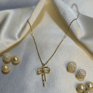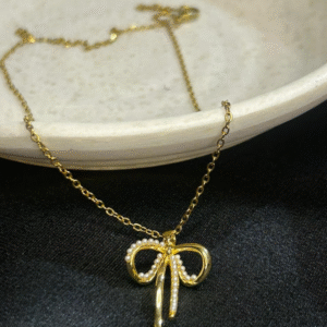 Cute Bow with Pearl 18K Gold Plated Anti-Tarnish Necklace